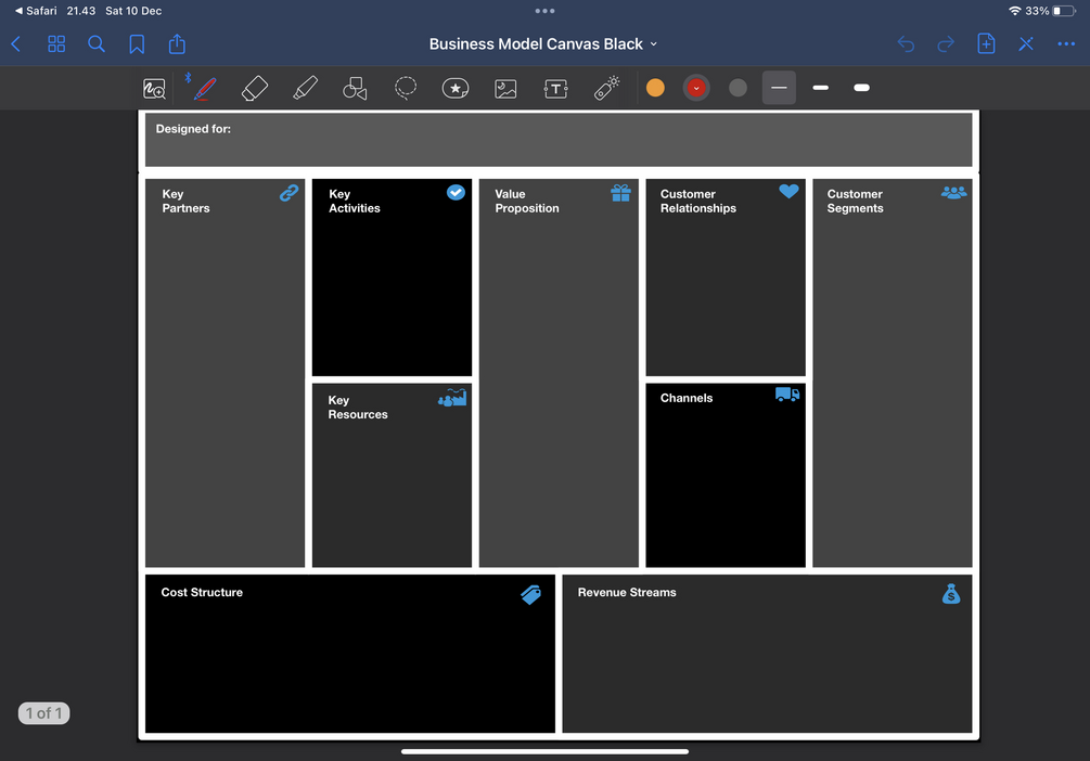 The Business Model Canvas is a strategic management template used for developing new business models and documenting existing ones. It offers a visual chart with elements describing a firm's or product's value proposition, infrastructure, customers, and finances, assisting businesses to align their activities by illustrating potential trade-offs.